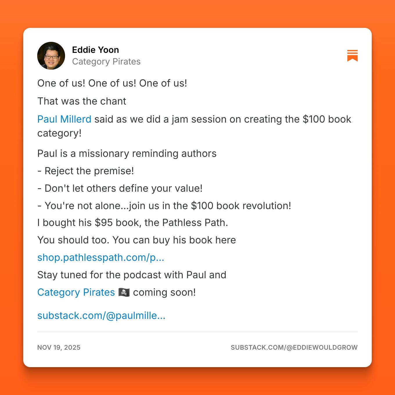 Category Pirates are designing a new book category that is worth $100 at the low end. One where Authors take at least 50% of revenue. One that could exponentially increase the total pie for everyone.